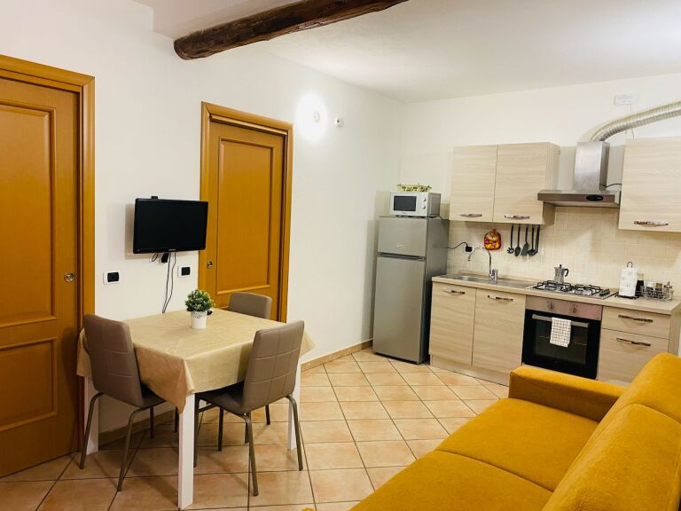 Angolo cottura completo di fornelli a gas, forno elettrico, microonde, lavatrice, frigo e freezer per ogni esigenza.